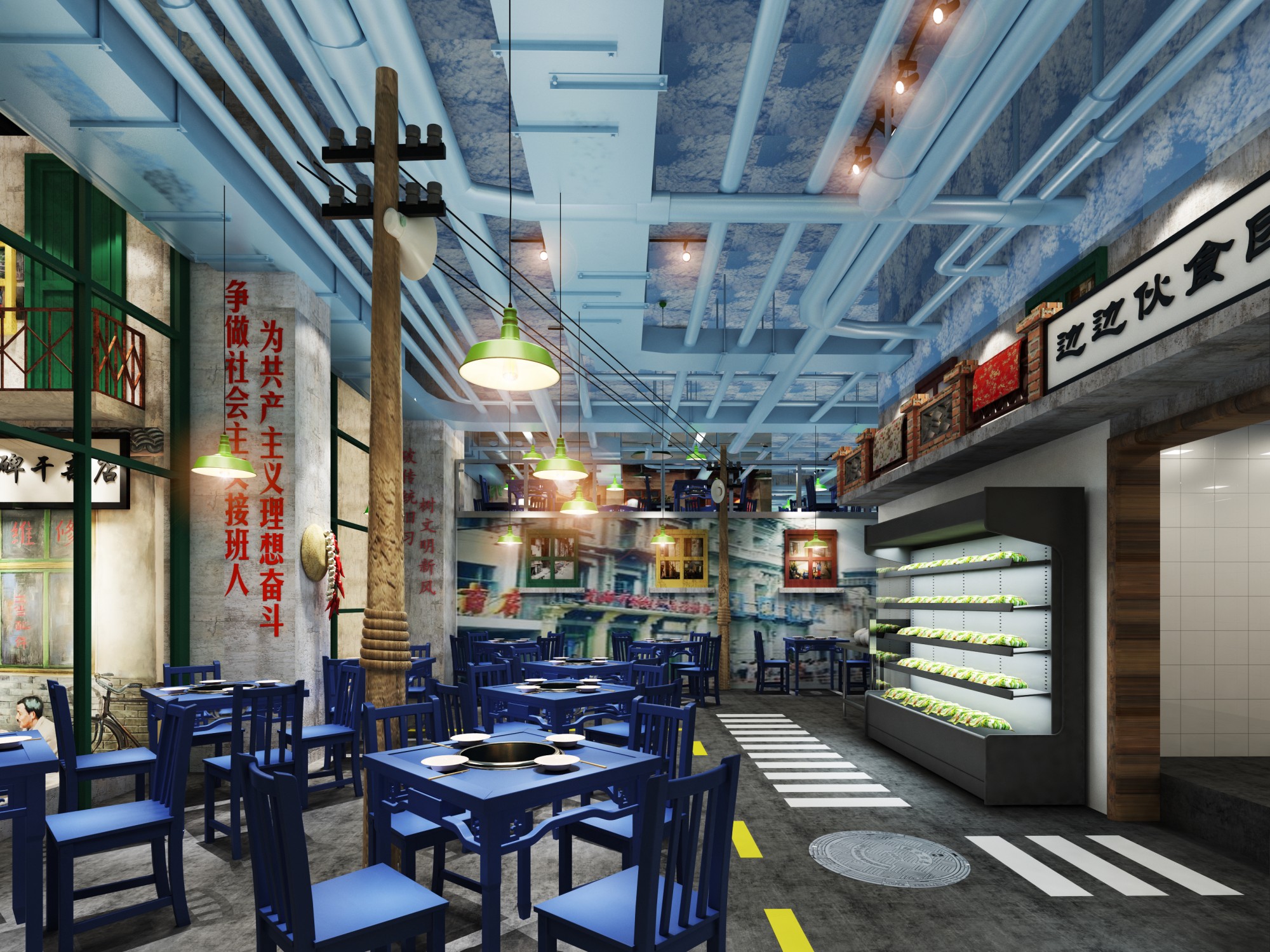 馬路邊邊火鍋串串店大廳效果圖