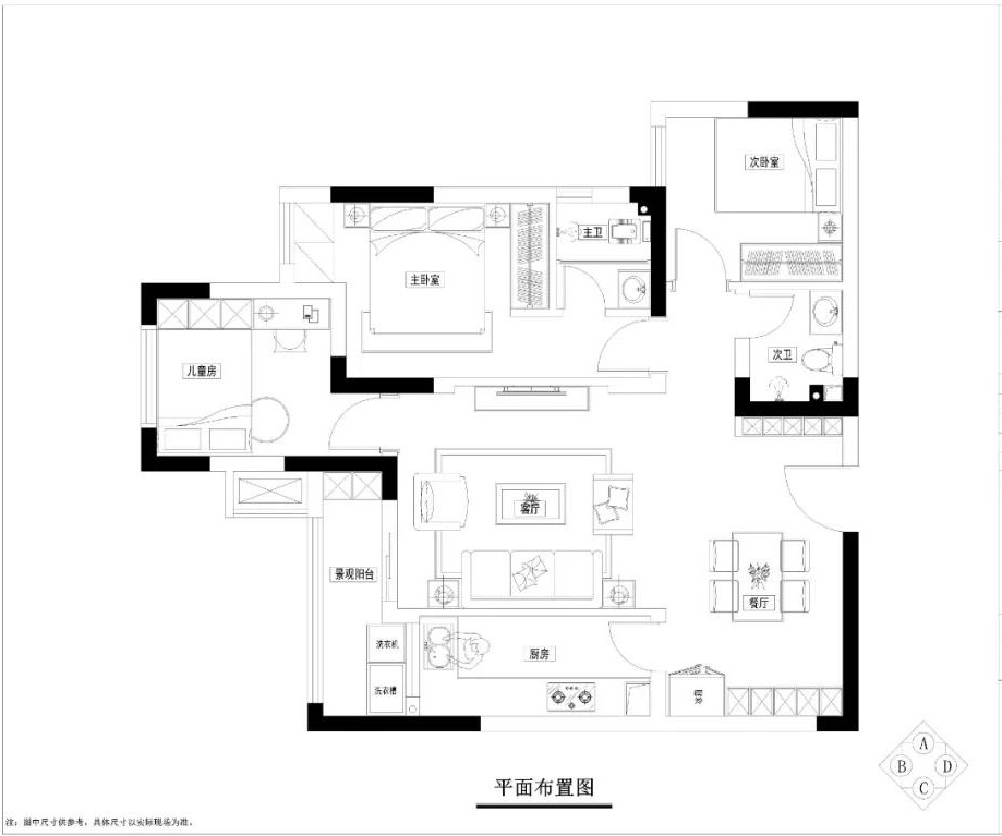 該房屋戶型面積較小,只有80m2,并且還是三室二廳,導(dǎo)致每間屋子的空間都較為局促。因此,進(jìn)行設(shè)計(jì)的時(shí)候,我們需要考慮到空間利用的問(wèn)題,將有限的房屋面積充分利用起來(lái)。同時(shí)也要符合用戶的需求,在利用空間之余給兒童留下活動(dòng)的區(qū)域。