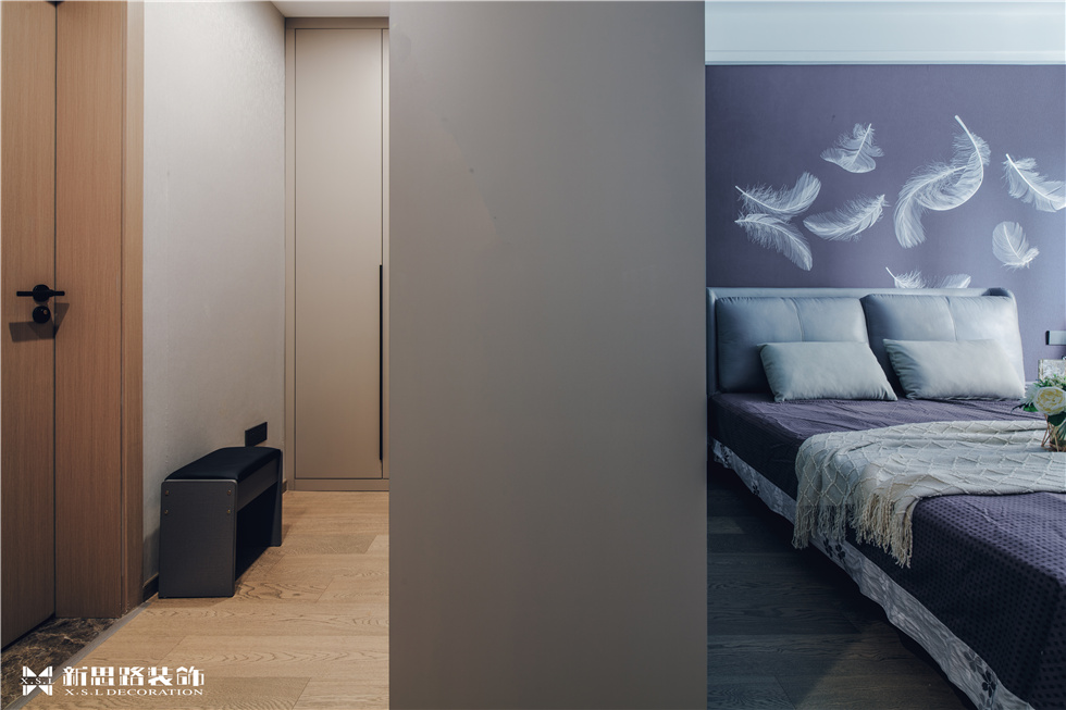 主臥由臥室、衣帽間和主衛(wèi)三個(gè)部分構(gòu)成,超多柜體的設(shè)計(jì)讓收納不再成為煩惱。整體選擇盡量簡(jiǎn)約和減少配飾的設(shè)計(jì)思路,力求減輕累贅和繁復(fù)感。在配色上,選擇了藏青色和白色的搭配,更深沉穩(wěn)重、有格調(diào),再點(diǎn)綴一抹橙色,空間氣氛不會(huì)顯得沉悶。臨近窗戶的位置增添一張沙發(fā),可坐可躺,是個(gè)放松和休息的不錯(cuò)選擇。