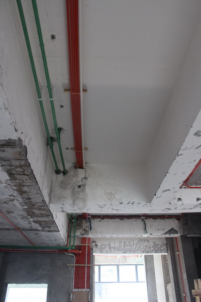 8月21日,在經(jīng)歷一些小波折(主要是業(yè)主與雅居樂物業(yè)方面就頂樓花園施工問題發(fā)生了一些小糾紛,導致水電施工不太順暢)之后,潘老師的工地進入了水電驗收階段。小編也特地跑了趟工地,為大家?guī)泶罅啃迈r、詳實的水電照片。廢話不說了,上圖!