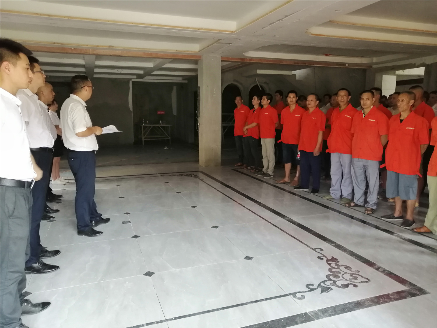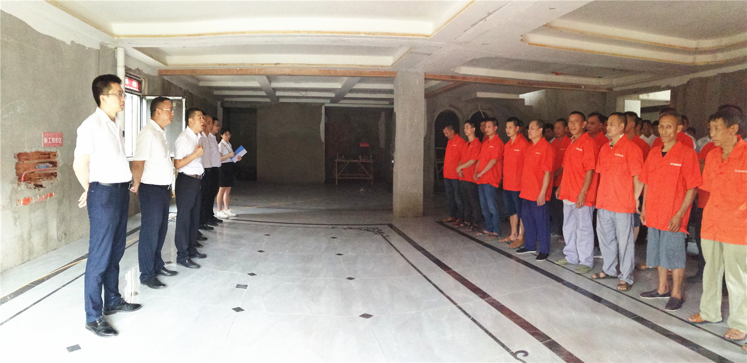 給工人和項目經理整隊,展現(xiàn)良好精神面貌