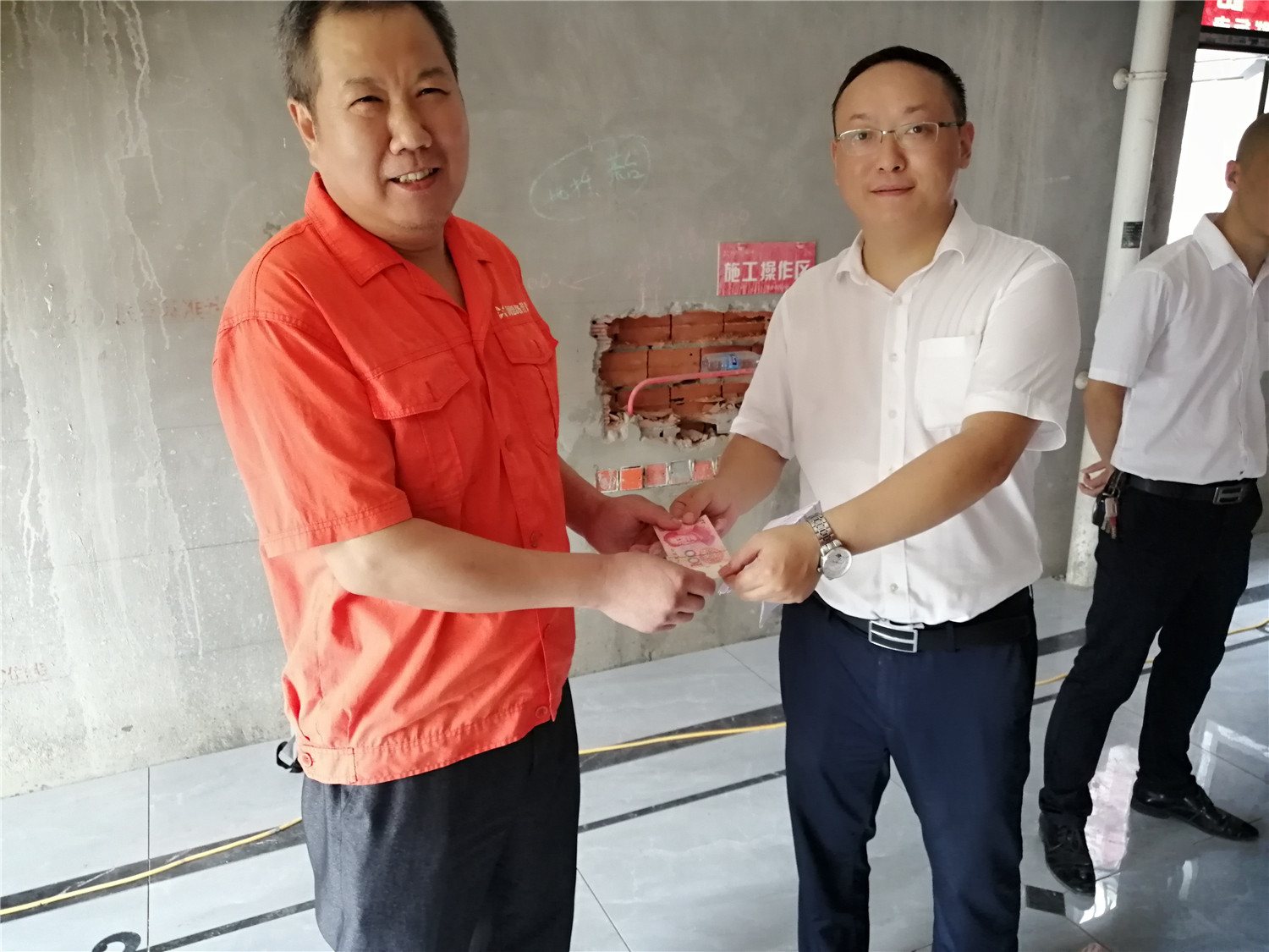 文經理給問題回答正確的工人現(xiàn)場發(fā)放現(xiàn)金獎勵