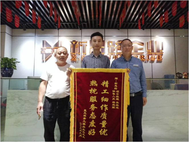 9月21日,來(lái)自藍(lán)光林肯公園的業(yè)主王先生在休息日,專(zhuān)程前來(lái)新思路裝飾總部,將一面寫(xiě)著“精工細(xì)作質(zhì)量?jī)?yōu),熱忱服務(wù)態(tài)度好”的錦旗贈(zèng)送給項(xiàng)目經(jīng)理熊維進(jìn)與銷(xiāo)售代表?xiàng)罱ㄝx,以感謝新思路裝飾公司精湛的施工技藝與熱情周到的服務(wù)。