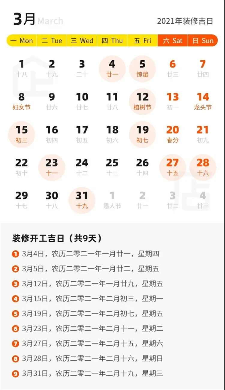 以上就是2021年的所有裝修吉日啦,干貨滿滿,需要的朋友趕緊轉(zhuǎn)發(fā)收藏!