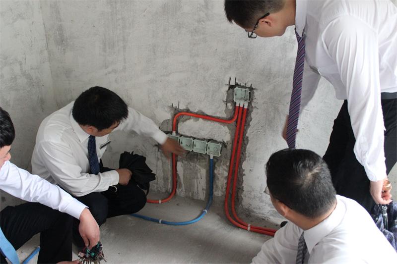 張總正在向大家詳細(xì)講解墻面開槽工藝標(biāo)準(zhǔn)