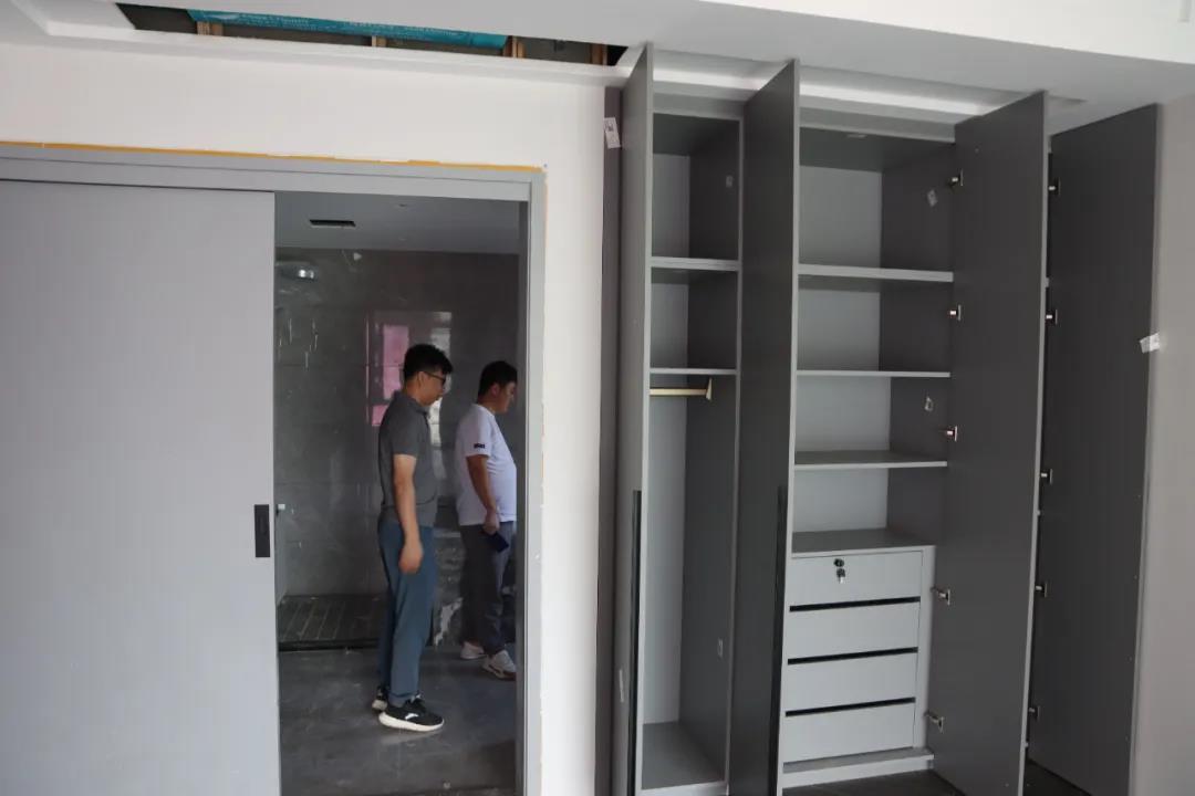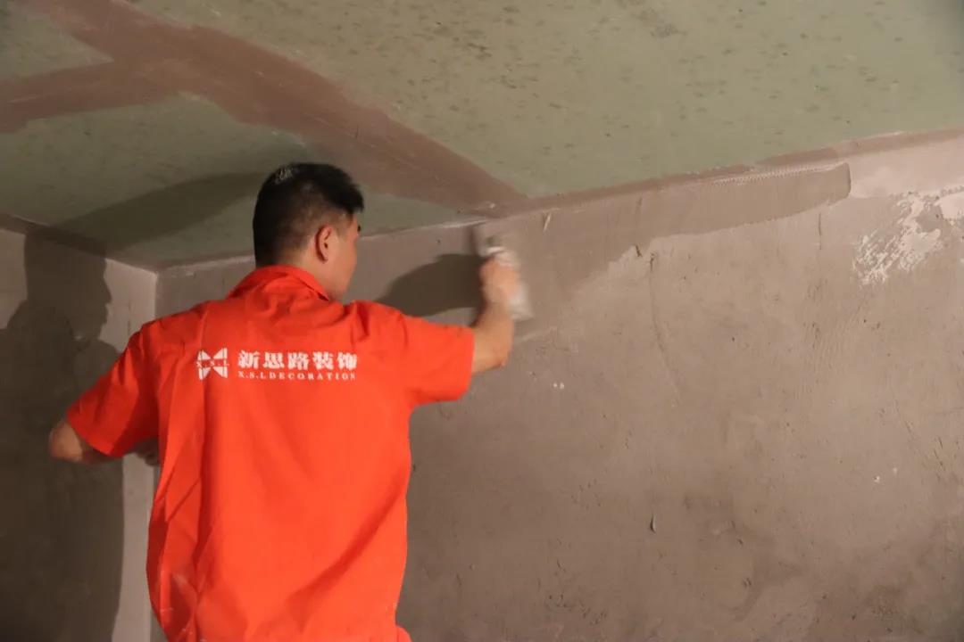 我們來到的第一處工地是水電階段剛結(jié)束、正在進(jìn)行硬裝階段的工地??蛻粽诠さ厣喜榭辞闆r,設(shè)計師敖元壩剛到現(xiàn)場,就和我們在施工的工人以及在場的客戶交流起來。