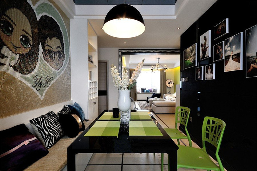 臥室也就是洞房,是新婚家庭的中心,也是新婚夫婦高度重視的地方。它的裝飾應(yīng)體現(xiàn)出喜慶、溫馨、浪漫的氣息,紅色是傳統(tǒng)的中國式婚禮的主色調(diào),因此中國人也比較喜歡用喜慶的紅色裝點(diǎn)新房。紅色的床上用品、紅色的窗簾等,結(jié)婚的當(dāng)天,就靠這些裝飾來營造喜慶氣氛。窗簾可用外薄內(nèi)厚的兩層,既遮擋視線、保持室溫,又不影響白天休息,窗簾、床罩、沙發(fā)罩等織物的圖案、顏色的選擇要協(xié)調(diào)。再輔以適當(dāng)?shù)膸в袀€性特點(diǎn)的裝飾物,使室內(nèi)充滿喜慶浪漫的氣息,也可體現(xiàn)主人對美好生活的追求。