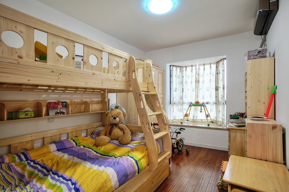 子女房與主臥最大的區(qū)別就在于設(shè)計(jì)上要保持相當(dāng)程度的靈活性。子女房只要在區(qū)域上為他們做一個(gè)大體的界定,分出大致的休息區(qū)、閱讀區(qū)及衣物儲(chǔ)藏區(qū)就足夠了。在室內(nèi)色彩上吸引孩子是設(shè)計(jì)子女房的要點(diǎn)。兒童房間容易弄臟,裝飾時(shí)應(yīng)采用可以清洗及更換的材料,最適合裝飾兒童房間的材料是防水漆和塑料板,而高級(jí)壁紙及薄木板等不宜使用。