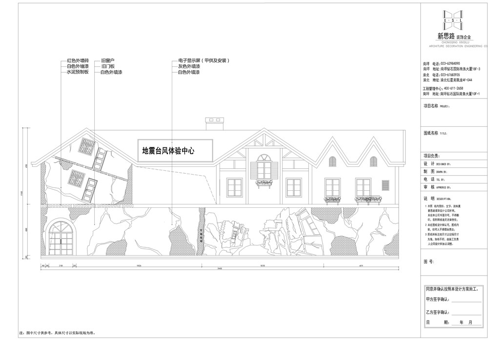設(shè)計施工項目:仙女山旅游景區(qū)(地震體驗中心) 設(shè)計立面圖 設(shè)計效果圖