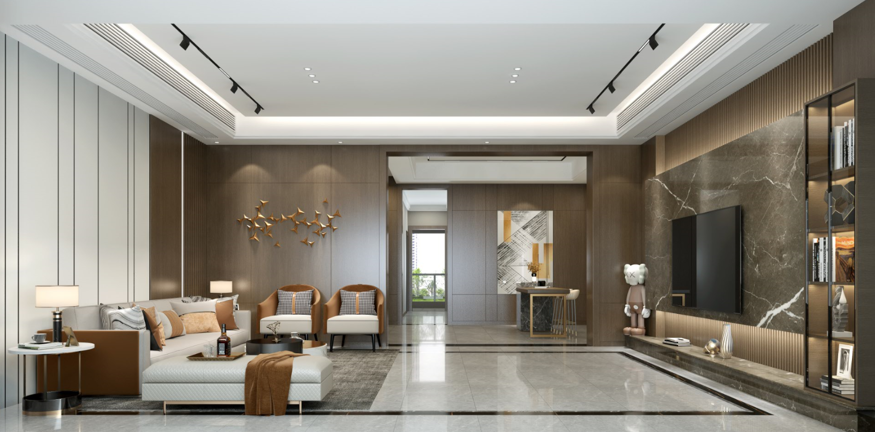 設(shè)計特點:這套現(xiàn)代簡約風格裝修案例,整體空間以現(xiàn)代簡潔為主,將滿足主人的居住需求作為設(shè)計導向,在空間內(nèi)融合了多種現(xiàn)代高級的元素,咖啡色的木質(zhì)元素搭配灰色詮釋不一樣的高級感,為家人營造出一種舒適溫馨的居住體驗。