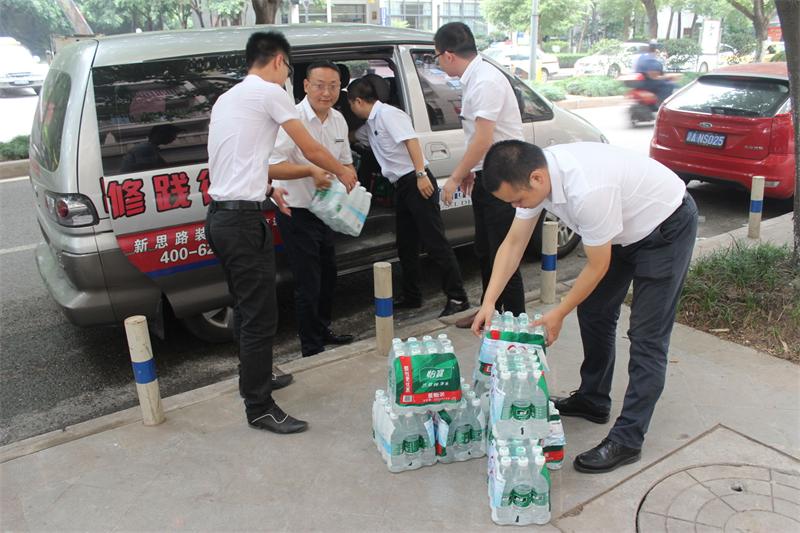 時下已是8月下旬,但山城氣溫依舊高居不下。炎炎夏日,驕陽似火,正是公司各施工工地趕工期、保品質的黃金時期。為了做好夏季防暑降溫工作,確保廣大一線員工的身心健康和安全,8月26日,新思路裝飾“2015夏季送清涼”活動正式啟動,以工程部、南坪店、北紅星店等部門組成的慰問小組,帶著藿香正氣水、礦泉水等防暑降溫物品,深入到工地施工一線,親切慰問在高溫下奮戰(zhàn)的工人師傅們,給他們送去了公司的關懷和絲絲清涼。