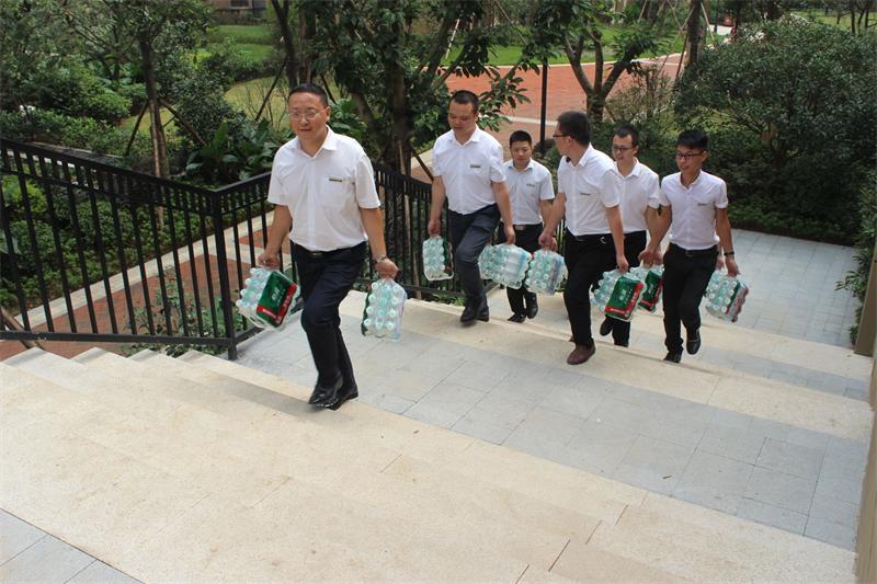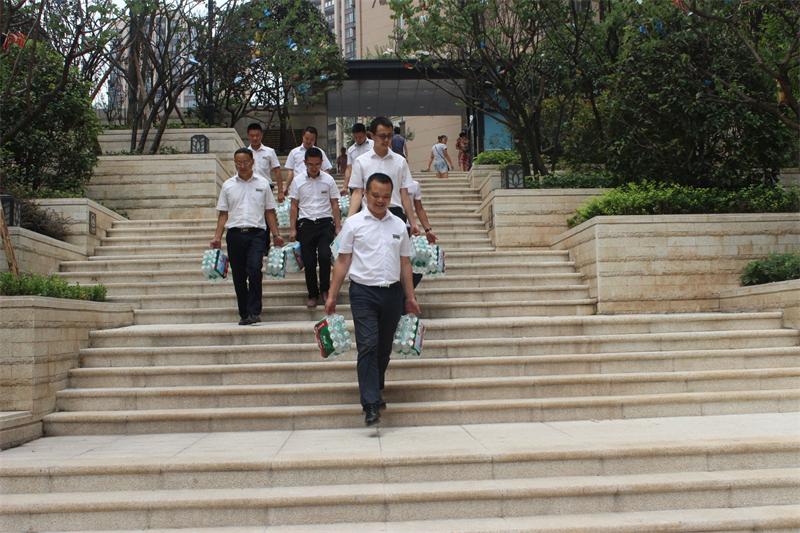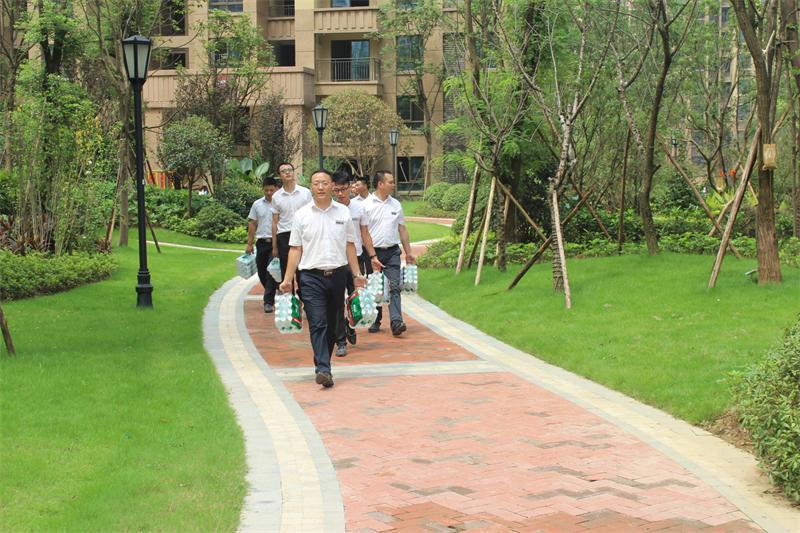 慰問小組扛著水向協(xié)信阿卡迪亞工地進發(fā)