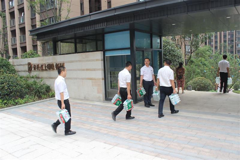 慰問小組扛著水向保利江上明珠工地進發(fā)