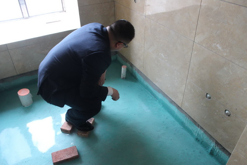 李總正在仔細(xì)檢查防水工藝細(xì)節(jié)