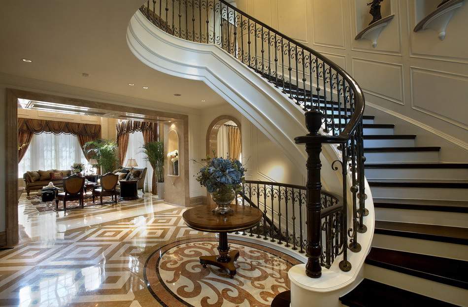 4.旋轉梯。這種樓梯造型生動,富于變化,節(jié)約空間,它常常成為空間中的景觀,成為不可分割的構圖組件,它的材料可以是混凝土、鋼材,甚至是有機玻璃的,現(xiàn)代的材料更宜于表現(xiàn)旋轉梯的流動、輕盈的特點。在室內(nèi)設計階段應考慮到旋轉梯的形態(tài)多變而帶來的工藝方面的難度,應根據(jù)現(xiàn)有的機具、商場、經(jīng)濟等因素合理地選擇材質(zhì)和造型。